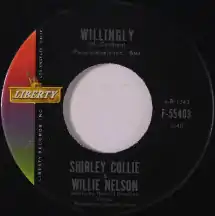 "Willingly" is a duet by American country music singer Willie Nelson and Shirley Collie, produced by Joe Allison during Nelson's third session for Liberty Records. Released in March 1962, the album reached number ten on Billboard's Hot Country Singles.