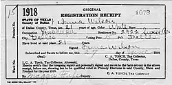 Frederick and Henrietta had a son, Laurence Frederick (1895–1981),[14] and a daughter, Irma (1897–1918).[15] Irma attended Highland Park Academy, and was among the first Texas women registered to vote in the July 1918 primary election. Primary suffrage did not require a state constitutional amendment; therefore, it could be passed by a simple act of the Texas legislature. State Representative Charles B. Metcalfe introduced the woman suffrage primary bill to allow women the right to vote in primary elections in Texas, and it passed both the House and Senate.[16]