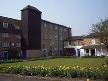 By the 17th century, weaving had become a busy trade, and the carpet industry began in 1741 when two French weavers were brought in by Earl Henry Herbert of Pembroke to teach the local people new skills. Carpet weaving prospered until 1815, when peace following the Napoleonic Wars introduced European competition. Machinery to produce Axminster carpets was installed in 1835.[4] The Wilton Royal Carpet Factory was founded at the turn of the century, with the help of the then Lord Pembroke, to rescue the previous carpet factory that had fallen into financial difficulty. The factory continued to operate until 1995, when it closed temporarily after a takeover. The factory re-opened, although it was unable to retain the Wilton Royal prefix.[2]