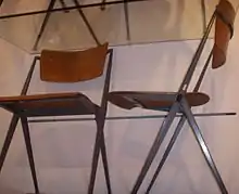 Wim Rietveld was employed at Gispen from 1953 till 1957. He was talented in combining functionality and aesthetics in his furniture, and was able to devise simple production techniques. He was a typically Dutch designer in his love for construction and functionality.[2] Unlike other typical Gispen furniture, Rietveld's designs did not use hollow tubular steel, but much thinner massive steel, which looks less conspicuous and is easier (and cheaper) to bend. Wim Rietveld also introduced foam rubber padding and pressed plywood at the Gispen company.[1]