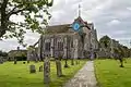 Winchelsea retains its medieval setting on a hill surrounded by largely empty marsh, the original layout of the planned town and the largest collection of medieval wine cellars in the country with the possible exception of Norwich and Southampton. It also retains three of the four town gates and several original buildings, including the parish church, which is dedicated to St Thomas the Martyr. Another church, St Leonard's, was later the site of a windmill, which was blown down in the Great Storm of 1987. Some of the original 13th/14th-century fortifications can still be seen at the Strand Gate and Pipewell or Ferry Gate. The scale of the original plan for New Winchelsea can be judged by the site of the "New Gate", over half a mile outside the current town.