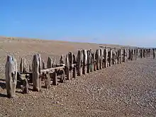 Across the road from the churchyard stands the Court Hall, one of Winchelsea's oldest buildings, the lower floor once being the gaol. The first floor is now a museum, full of relics of the history of Winchelsea, the Corporation, and a model of the town. Nearby is the town well, dug in 1851 to save water being carried up the hill. It is thought to be 80 feet deep.[7] At the foot of Strand Hill stands the town workhouse Strand House just behind the port area of Winchelsea which runs along the river bank on the far side of the main road. This area contains the remains of several old buildings, such as the Old Malt House and Appletree Wick while Strand House itself was built around 1425 according to dendrochronology. These buildings made up the workhouse of the parish of Winchelsea being known as "The Old Poor Houses".[8] The area was a subject of archaeological investigation in 2013 which found the remains of the medieval wharf and a medieval boat next to the Bridge Inn.[9]