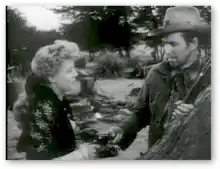 Lola and her fiancé Steve Miller (Charles Drake) are in a wagon heading to the site of their new home. As they are pursued by Young Bull and his warriors, they realise that they will not be able to outrun the Indians. Panicking, Steve jumps on his horse and rides off, claiming he is going ahead to find help; Lola is stranded. Not far along, however, Steve sees a small encampment of soldiers and goes back to retrieve her. Lin and High-Spade, chased by the same Indians, ride into the encampment that night.