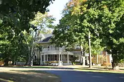 The principal surviving elements of the estate complex are its main house, gatehouse/caretaker's cottage, two barns, an ice house, and a hen house. The main house is a large three-story wood frame building, with a hip roof and clapboarded exterior. The building has massing that is Colonial Revival, and includes decorative features from Queen Anne and Shingle styles. When built, the house had all of the modern amenities of the time, include gas lighting. Fresh water was supplied from a water tank in the attic of the cow barn, which was supplied from the lake by a steam-powered pump.[2]