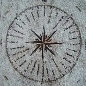 Traditional compass roses in Provence (see illustration, which shows Midi, or the South, at the top) have the names of the winds by the points of the compass.