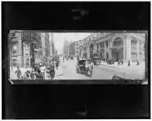 On St Patrick's Day 1899, while people were gathered below to watch the parade, a fire destroyed the hotel within 90 minutes.[4] Supposedly the fire started when someone threw an unextinguished match out of a second-floor window and the wind blew it against the lace curtains.[5][6]