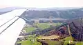 The core of the vortex trailing from the tip of the flap of a commercial airplane with landing flap extended.