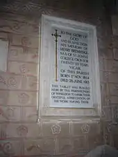 The church was reopened by the late Rev. James P. Bremridge. father of his successor, the present Vicar, 22nd October, 1873.