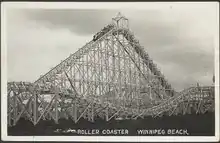 A boardwalk took strollers along the beach to the carnival concessions and cottages. A wooden roller coaster was one of the largest in the country at the time and carried hundreds of passengers on a busy day. The Pavilion housed a 1,300-square-metre (14,000 sq ft) dance floor, reputed to be the largest in Western Canada.