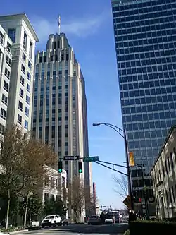 ![]() Skyline of Winston-Salem with the redeveloped Bailey Power Plant in the foreground and 100 North Main Street, Winston Tower, and the Reynolds Building in the background | |