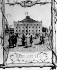 Delays in construction meant that the theatre wasn't finished in time for Lind's first show. She arrived to great fanfare and a reported gathering of over 40,000 (all arranged by her manager, P. T. Barnum), but without the theatre being built for her; instead, Miss Lind opened at New York City's Castle Garden. The theatre that was to have opened with "the name of Jenny Lind [that] would attract attention all over the country",[8] was instead later opened and was christened Tripler Hall, thereafter playing numerous minstrel shows, an entertainment then quite fashionable on the American stage.