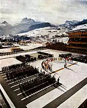 The opening ceremonies of the 1956 Winter Olympics in Cortina d'Ampezzo