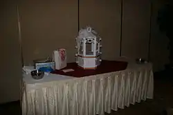 A wedding wishing well is a fancy donation box that gained popularity among bridal couples of certain countries (with one survey done in 2004 on Australia allegedly stating that up to 60% of weddings had them),[1][2] who have often lived together before marrying, or who have been previously married, and do not need any of the traditional wedding gifts. They are also sometimes found at showers to collect monetary gifts for the guests of honor, as well as wedding wishes or marriage quotes, poems and messages of congratulations. Wishing wells at bridal showers are popular in the NYC/NJ area. Most people bring small gifts such as spatulas or pot holders, to place in the wishing well. Wishing well gifts are in addition to gifts bought from the bride’s registry.