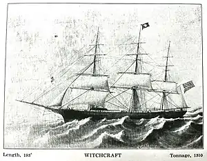 Witchcraft was a clipper built in 1850 for the California and China trade. She made record passages from Rio de Janeiro to San Francisco, and from San Francisco to Callao, Peru.
