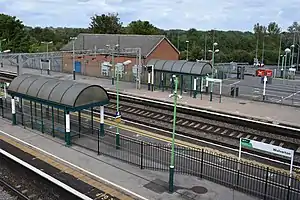 For many years after the wooden station building was demolished, Wolverton railway station was a temporary shed in the car park at track level. A new brick building to replace it was finally opened on 21 June 2012.[3] The new building is also at track level and access to all but the adjacent platform is via stairs.