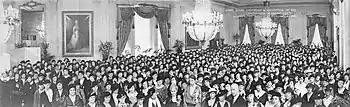 These Faculty Wives clubs were formed during the Progressive era and served the same functions of community, cultural education, and service that characterized larger groups. One of the clubs' primary functions was fostering community among those affiliated with the university. The wives at Ball State University held regular dinners for their husbands, both to relieve stress and build relationships.[77] At University of Washington the wives formed a "Newcomers club" to ensure that the new faculty wives felt welcome and included at the university.[74]