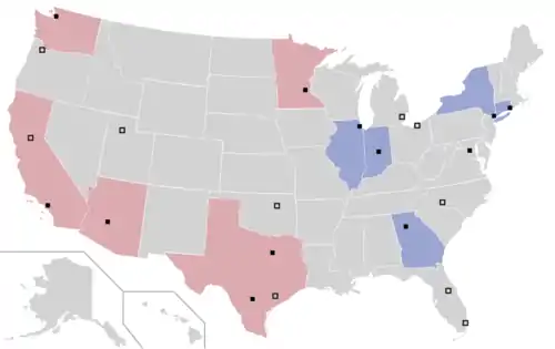 Six WNBA teams are associated with an NBA team from the same market and are known as sister teams. These teams include the Brooklyn Nets and New York Liberty, the Indiana Pacers and Fever, the Los Angeles Lakers and Sparks, the Minnesota Timberwolves and Lynx, the Phoenix Suns and Mercury, and the Washington Wizards and Mystics. Of these teams, only the Sparks have completely separate ownership. The Liberty had been associated with the New York Knicks, having been owned by the Knicks' parent company, The Madison Square Garden Company,[32][33] but the team was sold in January 2019 to a group led by Joseph Tsai, then a minority owner of the Nets[34] and now sole owner of that team.[35] Through the 2017 season, the San Antonio Spurs and Stars were also paired, but that relationship ended in October 2017 when the Stars were bought by MGM Resorts International and moved to Las Vegas.[36]
