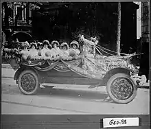 Suffragists hosted a large parade as part of the Harvest Festival Celebration in 1915.[37] The parade was lead by Eleanor Raoul on horseback and following her, suffragists riding in Eastern Victory, a car once owned by Anna Howard Shaw.[37][51] The parade had a marching band and around two hundred marchers, all wearing yellow sashes.[52] After the marchers, came female college students wearing caps and gowns who were followed by two-hundred decorated cars.[52] Despite the size of the parade, the suffragists had almost no help controlling traffic from the Atlanta Police Department.[53] The police did help significantly with the harvest parade which was taking place at the same time.[53]