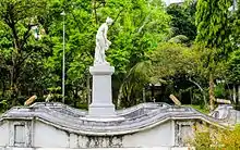 Since 1952, the college has been housed in Shashi Lodge, a landmark building that sits on a 9-acre (3.6 ha) property.[1][3] The current Shashi Lodge is the second building by this name. The original was built by Maharaja Shurjokanto Acharya Chowdhury and named for his son, Shashikanto Acharya Chowdhury. After the original lodge was destroyed by fire due to the 1897 Assam earthquake, Shashikanto had it rebuilt at a cost of Taka 3 lakh, using materials and instruments imported from Paris.[1] An unusual feature of the 24-room building is a musical staircase. On the grounds in front of the lodge there is a fountain that has as its centerpiece a stone statue of Venus bathing.[1][4] Shashi Lodge has been used as a filming location for movies and television plays.[1][4]