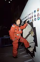 In 1985, Chiaki Mukai was selected as one of three Japanese Payload Specialist candidates for the First Material Processing Test (Spacelab-J) that flew aboard STS-47 in 1992. She also served as a back-up payload specialist for the Neurolab (STS-90) mission. Mukai has logged over 566 hours in space. She flew aboard STS-65 in 1994 and STS-95 in 1998. She is the first Japanese woman to fly in space, and the first Japanese citizen to fly twice.[22]