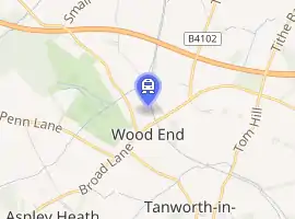 | Wikimedia Commons has media related to Wood End railway station. |
