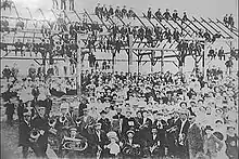 The community had its origins with the British Crown granting the west half of lots six and seven, concession 7 of Vaughan Township to Jacob Philips and Hugh Cameron in 1802.[2] During the early half the 19th century, a school was built on Vaughan's eighth concession; and a flour mill and store flourished at Pine Grove, which is among the oldest areas of the city. A scattering of houses arose around Smith's mill (presently Hayhoe Mills on Pine Grove). Smith's mill later became known as Smithsville, but was eventually incorporated into the town of Woodbridge. A similar settlement, known as Brownsville, came into being around a mill run by John Brown on the Humber River on what is today Wallace Street in today's downtown Woodbridge business section. Woodbridge proper, however, did not begin to take the form of a settlement or village until the arrival of Rowland Burr in 1837.[2]