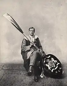 The last wooden spoon was awarded to Cuthbert Lempriere Holthouse, an oarsman of the Lady Margaret Boat Club of St John's College, Cambridge, in 1909 at the graduation ceremony in the University's Senate House. The handle is shaped like an oar and inscribed with an epigram in Greek which may be translated as follows: