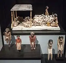Wooden tomb models were an Egyptian funerary custom throughout the Middle Kingdom in which wooden figurines and sets were constructed to be placed as grave goods in the tombs of Egyptian royalty. These wooden models represented the work of servants, farmers, other skilled craftsman, armies, and religious rituals.[1] The different types of models served as symbols and were believed to perform various functions for the deceased.[2]