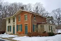Woodland station, also known as Zermatt and Morstein station, is a historic railway station located in West Whiteland Township, Chester County, Pennsylvania. It started as a two-story brick building constructed by the West Chester Railroad in the 1870s. It was enlarged in 1889, with a two-story, frame addition with vertical novelty siding.[2] It is now part of a corporate campus.