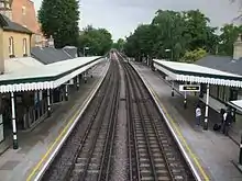 Woodside Park station was planned by the Edgware, Highgate and London Railway (EH&LR) and was originally opened as Torrington Park on 1 April 1872 by the Great Northern Railway[4] (which had taken over the EH&LR).[7] The station was on a branch of a line that ran from Finsbury Park to Edgware via Highgate. The station was renamed within a month of opening, and again in 1882.[4][5]