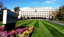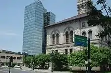In recent decades, a renewed interest in the city's downtown has brought new investment and construction to Worcester. A Convention Center was built along the DCU Center arena in downtown Worcester in 1997.[29] In 2000, Worcester's Union Station reopened after 25 years of neglect and a $32 million renovation. Hanover Insurance helped fund a multimillion-dollar renovation to the old Franklin Square Theater into the Hanover Theatre for the Performing Arts.[30] In 2000, the Massachusetts College of Pharmacy and Health Sciences built a new campus in downtown Worcester.[31] In 2007 WPI opened the first facility in their new Gateway Park center in Lincoln Square.[32] In 2004, Berkeley Investments proposed demolishing the old Worcester Center Galleria for a new mixed-used development called City Square. The ambitious project looked to reconnect old street patterns while creating a new retail, commercial and living destination in the city.[33] After struggling to secure finances for a number of years, Hanover Insurance took over the project and demolition began on September 13, 2010. Unum Insurance and the Saint Vincent Hospital leased into the project and both facilities opened in 2013. The new Front Street opened on December 31, 2012.[34] In July 2017, Massachusetts Lieutenant Governor Karyn Polito and other Baker administration transportation officials visited a construction project in the city to highlight $2.8 billion spent during Baker's administration on highway construction projects and improvements to bridges, intersections, and sidewalks.[35][36]