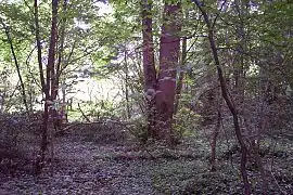 Locals presumed the house to be named "Worcester Park House", and have suggested that Blakesley School, was the original house,[7] while historical sources (below) suggest "Worcester House" as the name.[1] However the map of 1871[8] shows a building labelled "Worcester Park House" to be alongside the lake, to the west of it, on land that was, in the 1950s, overgrown with trees. The scant overgrown ruins in the photographs of the site fit with this map.