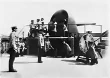 Two partial mobilisations of the garrison forces took place when it was feared that German raiders were operating in Australian waters. The first of these mobilisations occurred between February and April 1916, and led to the coastal defences being fully manned. After this time only the examination batteries at major ports, which were used to force vessels to stop and be searched if ever necessary, were manned.[21] On 20 November 1917, one of the coastal guns at Fremantle fired on the Japanese cruiser Yahagi when she gave an incorrect signal while entering the port. The Australian Governor-General subsequently travelled to Perth to apologise to Yahagi's captain for this incident.[14] The coastal defences were activated again between 21 April and 16 May 1918 when the raider SMS Wolf was thought to be operating near Australia.[14] The examination batteries were stood down on 21 November 1918.[21]