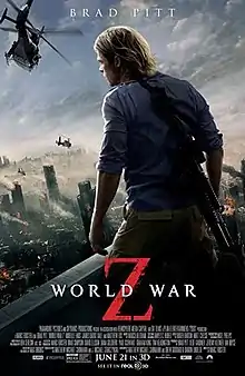 World War Z is a 2013 American apocalyptic zombie action horror film directed by Marc Forster, with a screenplay by Matthew Michael Carnahan, Drew Goddard, and Damon Lindelof, from a story by Carnahan and J. Michael Straczynski, based on the 2006 novel of the same name by Max Brooks. The film stars Brad Pitt as Gerry Lane, a former United Nations investigator who travels the world gathering clues to find a way to stop a zombie pandemic.[12] The ensemble supporting cast includes Mireille Enos, Daniella Kertesz, James Badge Dale, Matthew Fox, Ludi Boeken, Fana Mokoena, David Morse, Peter Capaldi, Pierfrancesco Favino, Ruth Negga, and David Andrews.