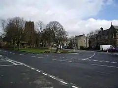 The village had a close association with the Thursby family, benefactors of the Burnley area,[1] and has a number of listed buildings. These include Jackson's House in the centre of the village, which was built in about 1600, and the Church of St. John the Evangelist which dates from 1833–1839.[6] The original plans for the church, drawn up by architect Lewis Vulliamy, can be seen on the Incorporated Church Building Society website.[7] It has a 61 ft clocktower, stained glass windows and wrought ironwork.[8] The churchyard has the grave of a packmaster, a person whose job was to lead packhorses across the moors in special sunken trails that allowed the horses to walk unhitched since the walls of the trail prevented them from straying.[1]