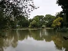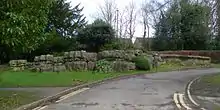 The gardens were laid out over four levels to utilise the elevated position of the site. The first level was a formal garden consisting of three circular areas known as Fountain, Dutch and Sundial. The second level consisted of formal terraces with a staircase, a formal pond surrounded by ball shaped yews. The third area was open parkland and the final area a lake complete with Pulhamite rock features.[4][5]