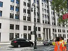 The western end of Worth Street, between Hudson Street and West Broadway, abuts 60 Hudson Street, the former Western Union headquarters that later was converted into an internet hub.[2] Worth Street passes through the cluster of government offices and courthouses centered on Foley Square. 125 Worth Street (at Centre Street) houses the headquarters of the New York City Health and Hospitals Corporation,[3] the Department of Health and Mental Hygiene,[4] and the Department of Sanitation.[5] Additionally, the New York Supreme Court courthouses at 60 Centre Street and 80 Centre Street (the Louis J. Lefkowitz Building) and the Daniel Patrick Moynihan Federal Courthouse (Southern District of New York) at 500 Pearl Street all have entrances facing Worth Street.