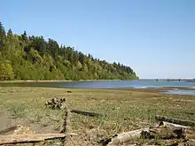 Wreck Beach (Squamish: Ts'at'lhm) is a clothing-optional beach located in Pacific Spirit Regional Park, which is in turn part of the University Endowment Lands just west of Vancouver, British Columbia, Canada. The clothing-optional section is clearly marked with signs and stretches approximately 6.7 kilometres or 4.2 miles from Acadia Beach, in the north, to the Booming Grounds Creek on the north arm of the Fraser River. The park is administered by the Greater Vancouver Regional District (GVRD), though aboriginal claims are repeatedly asserted, especially by the Musqueam.