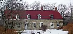 The house is a rectangular 1 1⁄2-story, seven-bay stone house with gabled roof, front dormer windows and chimneys at both ends. The earliest portion of the house is marked by a small entrance and window near the north end on the front (east) facade; the later addition, constituting the bulk of the house, has a transomed door symmetrically placed between two windows on either side. The west facade has a matching door and window placement, now covered by an enclosed porch.[1]
