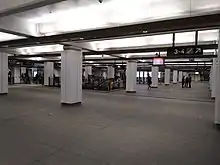 The station opened on 28 February 1932.[3] Wynyard was originally constructed with six platforms (the existing four platforms are still numbered from 3 to 6), with platforms 1-4 located on the upper level and platforms 5 and 6 on the lower level. The original intention was that Platforms 1 and 2, located adjacent to platforms 3 and 4, would eventually serve the eastern pair of railway tracks across the Harbour Bridge. In the interim, they were used as a terminus for North Shore tram services on Sydney's tram network, a service that operated over those tracks from the bridge's opening in 1932 until 1958. A feature of these lines was Australia's only underground tram terminus.[1] On 22 January 1956, the lines from platforms 5 and 6 were extended to Circular Quay as part of the City Circle.[1]