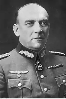 On 26 August, Nikolaus von Falkenhorst was appointed the unit's commander. For the Invasion of Poland that started on 1 September 1939, XXI Army Corps was part of 3rd Army (Georg von Küchler) within Army Group North (Fedor von Bock).[2] The unit's subordinate divisions were the 21st (Kuno-Hans von Both) and 228th (Hans Suttner) Infantry Divisions.[3][4]