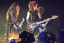 On January 15, 2009, the band arrived in Hong Kong for their January 16 and 17 shows.[77] On May 1, it was announced that Sugizo officially joined X Japan as lead guitarist. Since the band still considers the deceased Hide a member, Sugizo became the sixth member of X Japan.[78] Their first show with him as a full member was held the next day at the Tokyo Dome,[79] where they played "Jade" for the first time.[80] The Taiwan concert that was postponed for a second time in January, was finally held on May 30, 2009.[81]