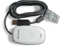 The Wireless Gaming Receiver (sold as "Crossfire Wireless Gaming Receiver" in the UK) allows wireless Xbox 360 accessories, such as wireless gamepads, racing wheels and headsets, to be used on a Windows-based PC.[33] The device acts in a similar manner to an Xbox 360, allowing up to 4 controllers and 4 headsets at a time to be connected to the receiver. The device has a 30-foot (10 meter) range and a six-foot (2 meter) USB cable.[34] It is specifically designed to work with games bearing the "Games for Windows" logo, but will function with most games that permit a standard PC gamepad. The official Xbox website noted that the adapter will work with "all future wireless devices".[35]