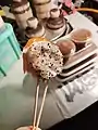 Wooden cages mirror cake is a kind of Xi'an's traditional dessert. Small wooden molds are filled with ground stick rice and steamed. After the powder becomes soft and gooey, it's pulled out and covered in sugar, nuts and a delicious rose flavored jam. The feature is white color, small and round, rather like a small mirror, hence it's called mirror cake.
