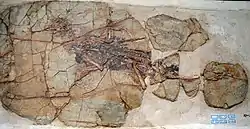 Xiaotingia is known from the holotype STM 27-2, an articulated and almost complete skeleton including the skull. It was probably collected in the Linglongta area, Jianchang, from the Tiaojishan Formation.[1]
