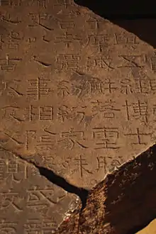 The Xiping Stone Classics (Chinese: 熹平石經) are a collection of Han dynasty stone carved books on various Confucian classics. They were set up at the Imperial Academy outside Luoyang in 175–183. The Classics were created by Cai Yong and a group of affiliated scholars who "petitioned the emperor to have the Confucian classics carved in stone in order to prevent their being altered to support particular points of view."[1]
