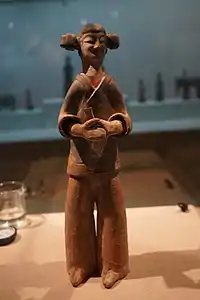 Closeup of earthenware dancer figurine from the Tomb of the King of Chu Tuolan Mountain Xuzhou Jiangsu Western han 2nd century BCE