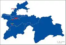 ![]() Settlement of the Yagnobians in Tajikistan. The solid red colour shows the valley Yagnob, the birthplace of the Yagnobians | |