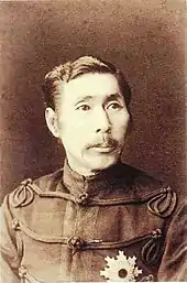 Gensui Prince Yamagata Aritomo (山縣 有朋, 14 June 1838 – 1 February 1922), also known as Prince Yamagata Kyōsuke,[1] was a senior-ranking Japanese military commander, twice-elected Prime Minister of Japan, and a leading member of the genrō, an élite group of senior statesmen who dominated Japan after the Meiji Restoration. As the Imperial Japanese Army's inaugural Chief of Staff, he was the chief architect of the Empire of Japan's military and its reactionary ideology. For this reason, some historians consider Yamagata to be the “father” of Japanese militarism.[2]