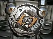 The models up to 1979 use points ignition. Two sets of points are located on the upper left of the cylinder head. On the right side cylinder head, an advance mechanism is located. An advance mechanism is used to retard the timing for easy starting and smooth idle. Post-1979 models use electronic ignition systems.